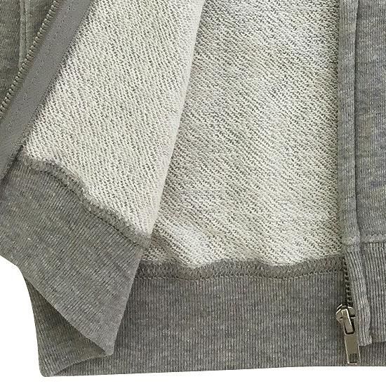 ◎生地は素肌にも気持ちいい裏パイル、フード2重仕立て、左右ポケット付き。使えるZIPパーカーで春秋冬もデニスと一緒!