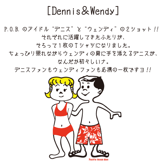 それぞれに活躍してきたふたりが、そろって1枚のTシャツになりました。ちょっぴり照れながらウェンディの肩に手を添えるデニスが、なんだか初々しいナ。デニスファンもウェンディファンも必携の一枚ですヨ!!