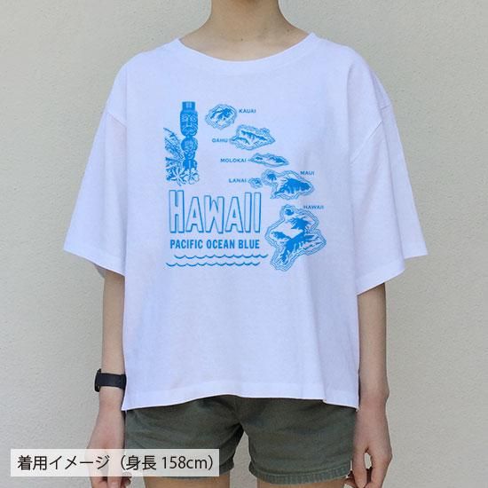 守護神ティキを胸に。この夏のラッキーアイテムになるかも!?ハワイ6島のイラストに、守護神ティキ像をあしらった一枚。楽園ハワイを着こなそう!