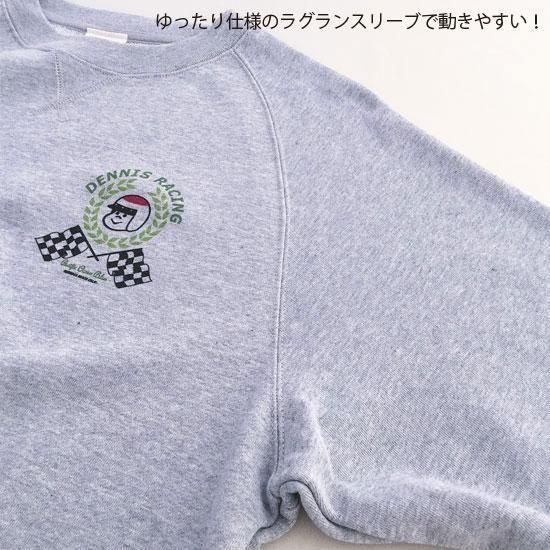 デニス、サーキットに参戦!旬シルエットのラグランスウェット颯爽とサーキットに登場したデニス。チェッカーフラッグを先頭で浴びること、それはそのレースでの勝者であることを意味するんだ。トップでフィニッシュラインを通過したら、オーディエンスの大歓声が待ってるよ。